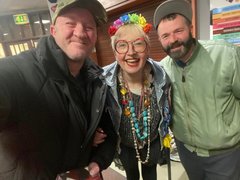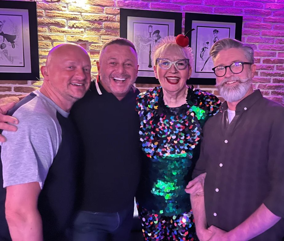 The production team, from L - R: John Crosby, Jason Walsh, Su Pollard,